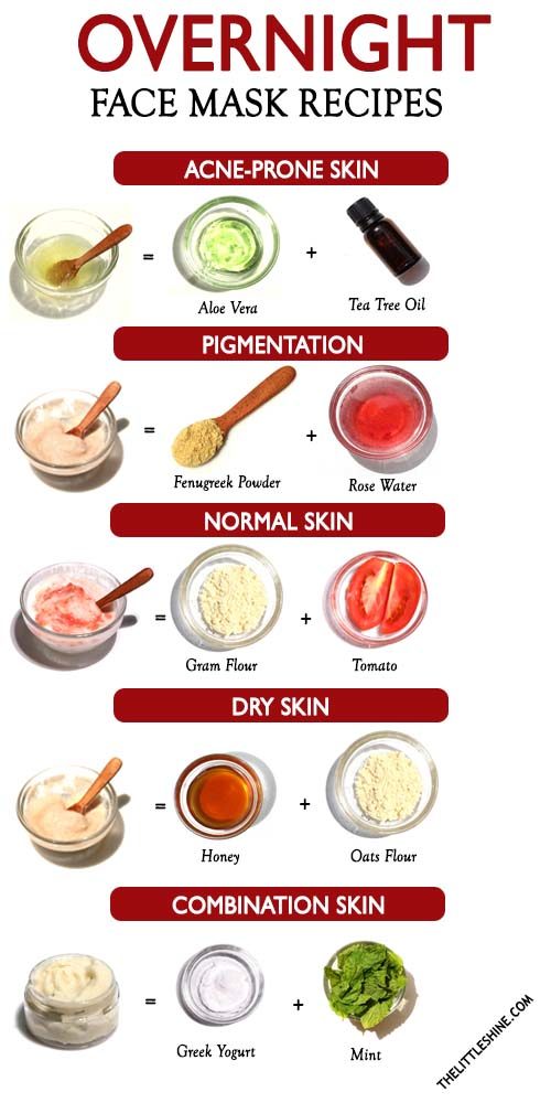 In a bowl, add 2 tablespoons aloe vera gel and 5 drops tea tree oil. Mix until it emulsifies and apply an even layer on facial skin. Let it set for a few minutes and go to sleep. Rinse off in the morning.