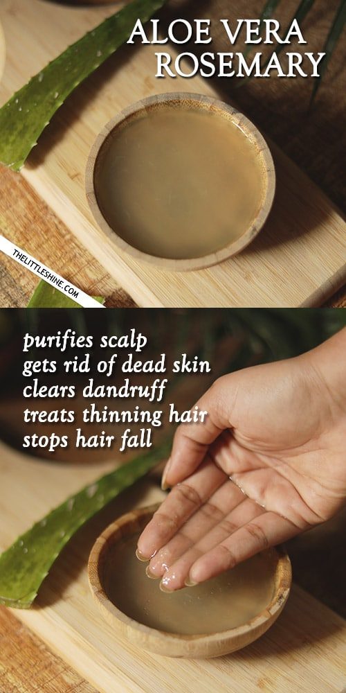 Hair Mask – Extract aloe Vera gel from the plant and add 1/4 up of the gel to a blender. Add in 1 tbsp. of rosemary leaves into the blender and blend on high. Apply this as a mask on your scalp 30 mins before you rinse it off with plain water. You can also few drops of rosemary essential oil to the aloe Vera gel and use it as a hair mask for 30 mins.