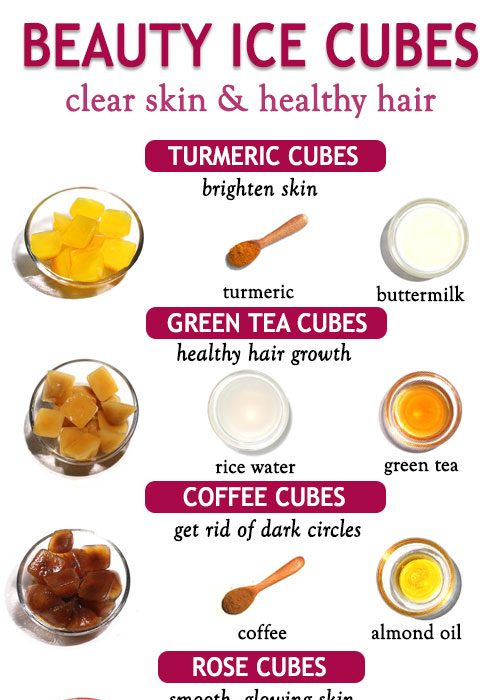 ROSE BEAUTY CUBES – Rose cubes help to bring an instant glow to the face and also makes it soft and smooth. Rose cubes are great when used before makeup as it acts as a makeup primer. Mix 1/2 cup of rose water along with 2 tbsp of raw honey or aloe vera gel. Take ice cubes in a soft cloth and massage rub it all over your face. Enjoy the cool therapy and feel the difference in your skin.