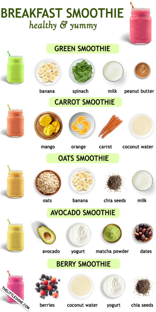 To make – You can add in honey if you want and blend everything in with 6-8 ice cubes until smooth. If the smoothie is very thick then u can add in some water or more milk to make it to your desired consistency. You can also add in a scoop of protein powder to these recipes.