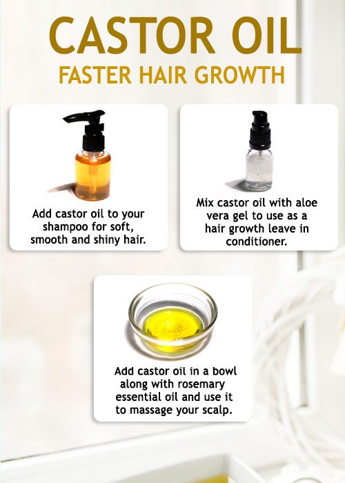 Add a tsp of castor oil with a tbsp of shampoo and use it while washing your hair. Massage the shampoo on your scalp, leave it on for few mins and rinse it off.
