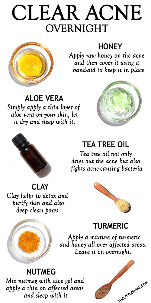 Apply a good amount of raw honey on the acne and then cover it using a band-aid to keep it in place. Do this at night and remove the band-aid in the morning and rinse off the honey with cold water.