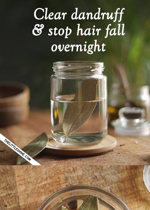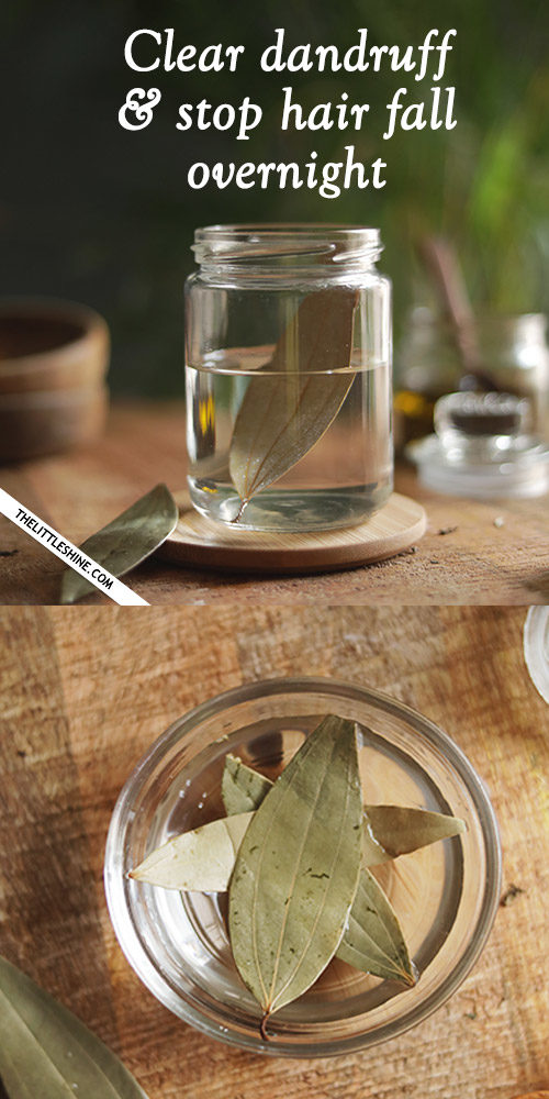 Boil 2-3 bay leaves in a cup of water for 5-10 mins. Let the leaves steep in the water until it cools down. Pour this water on your scalp after hair wash. You can add the water to a spray bottle and spray the water on your scalp. Massage the water into the scalp, tie your hair into a bun and sleep on it to treat dandruff overnight. Use it on alternative days to cure scalp infections and prevent hair fall.