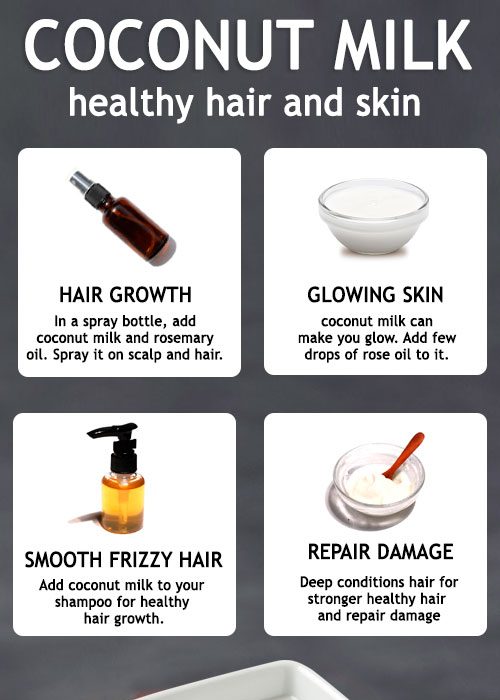 It is a great multipurpose beauty ingredient! Use coconut milk to add a healthy glow and keep skin looking smooth. Coconut milk can be used for skincare and hair care in the following ways: