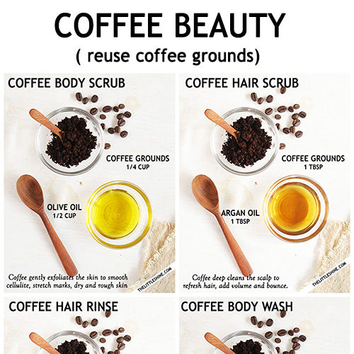 Coffee contains antioxidants and is also a rich source of caffeine that helps to fight free radicals, it tones the skin and, smooths fine lines and protects the skin from damage. Coffee gently exfoliates the skin, it also helps to deep clean the scalp. It regulates blood flow to treat cellulite and stretch marks. The caffeine in coffee is a source of antioxidants that prevent premature aging, even tone the skin, and also adds amazing shine to your hair. Once you brew your favorite coffee, store the coffee grounds. Here are amazing ways to reuse coffee grounds to make coffee beauty products at home –