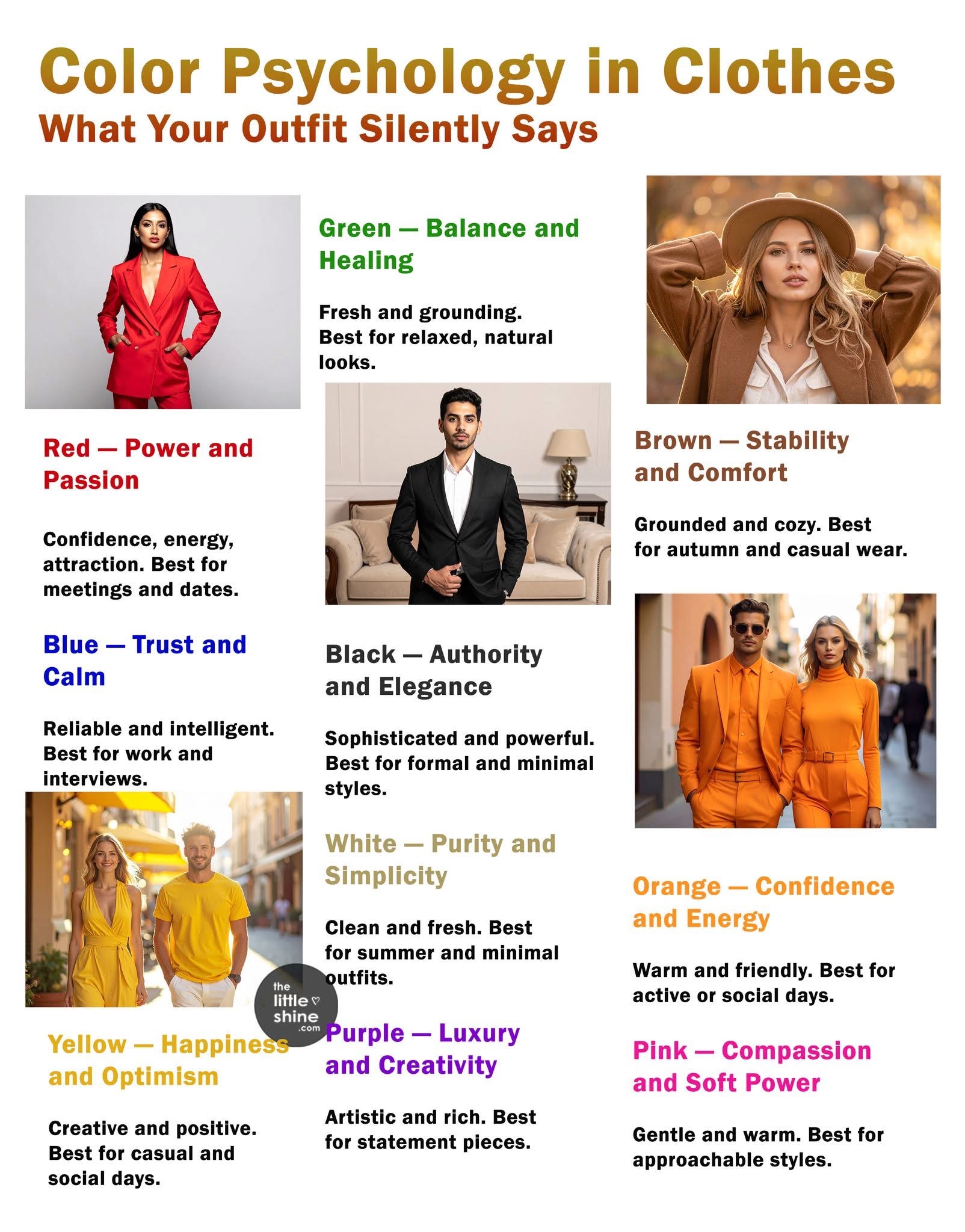 The colors you choose to wear speak before you do. π― They influence first impressions, emotions, and how others perceive your confidence, personality, and intent. Understanding color psychology helps you dress with purposeβwhether for work, social events, or everyday life.