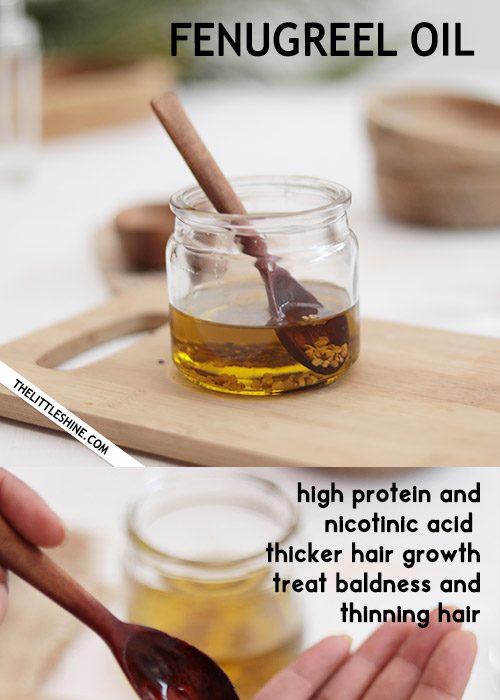 Fenugreeks is extremely effective to strengthen the hair follicles and also repair damaged hair. This natural oil helps in moisturizing the hair and bringing back the luster and bounce. It contains high protein and nicotine acid for healthy and thicker hair growth. Fenugreek seeds contain hormone antecedent that improves the thickness of hair and helps to regrow thinning hair and treating baldness. You can use fenugreek water to make an overnight hair thickening spray to grow your hair. READ MORE – MIRACLE HAIR THICKENING WATER RECIPE