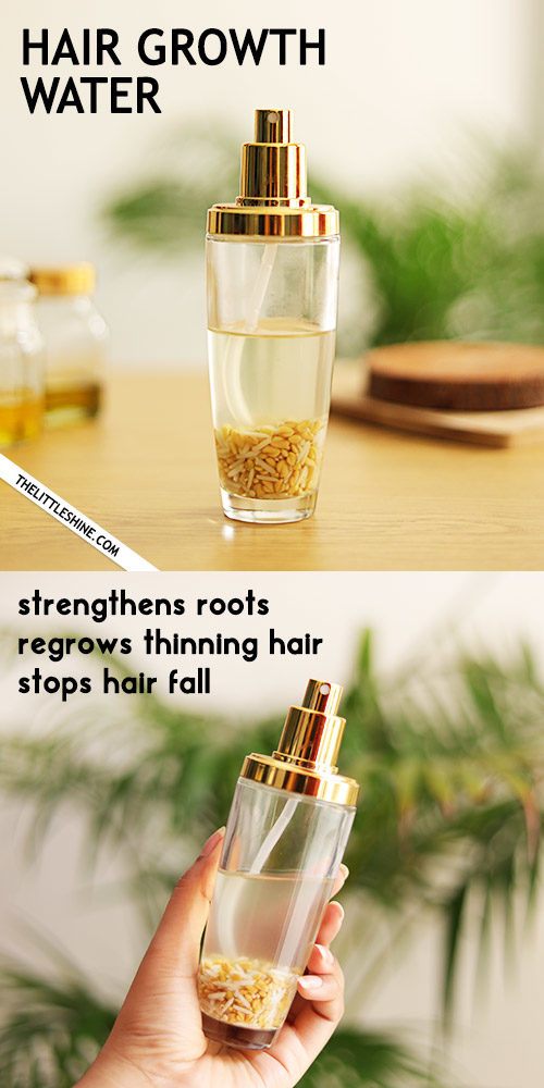 Pour the water in a spray bottle and spray it on your hair before hair wash. Simply spray the scalp and hair with the water and let it sit for 15-30 mins. Wash your hair with sulfate and paraben-free shampoo or make your own organic natural shampoo at home for healthy hair growth. READ MORE – Overnight Hair growth Aloe Vera Hair Masks
