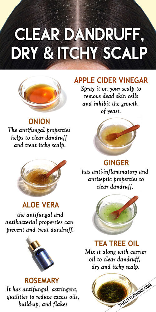 Use these natural ingredients that will gently cleanse your scalp to treats dandruff, clear the build-up of dead skin cells, and also relieve flaking and itching caused by dandruff.