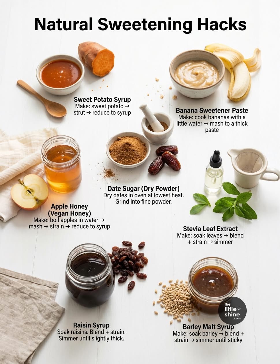 Refined sugar can be easily replaced with nutrient-rich, naturally sweet ingredients you can prepare at home. These homemade sweeteners use whole foods, offer better flavor profiles, and provide mild sweetness without additives. Below is a comprehensive guide to seven natural sweeteners—with exact quantities to help you make them confidently.