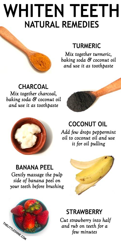 Rubbing the pulp side of fresh banana peel on teeth can help whiten and remove stains. You can also add in pinch salt for added benefits.