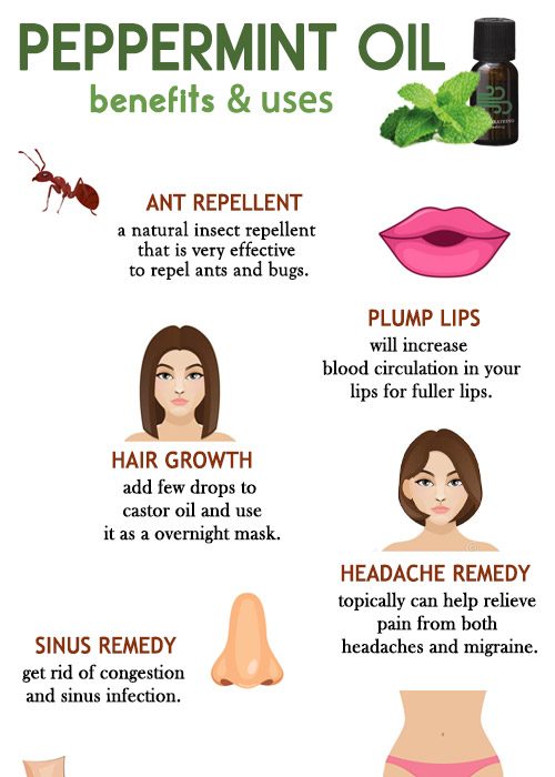 Treat Menstrual Cramps – Use food-grade peppermint oil, mix 6 drops of peppermint essential oil along with 1 tbsp of coconut oil. Simply massage it onto your abdomen in circular motions, few times a day. Let dry for a few seconds. Sit tight while the essential oils work their magic.