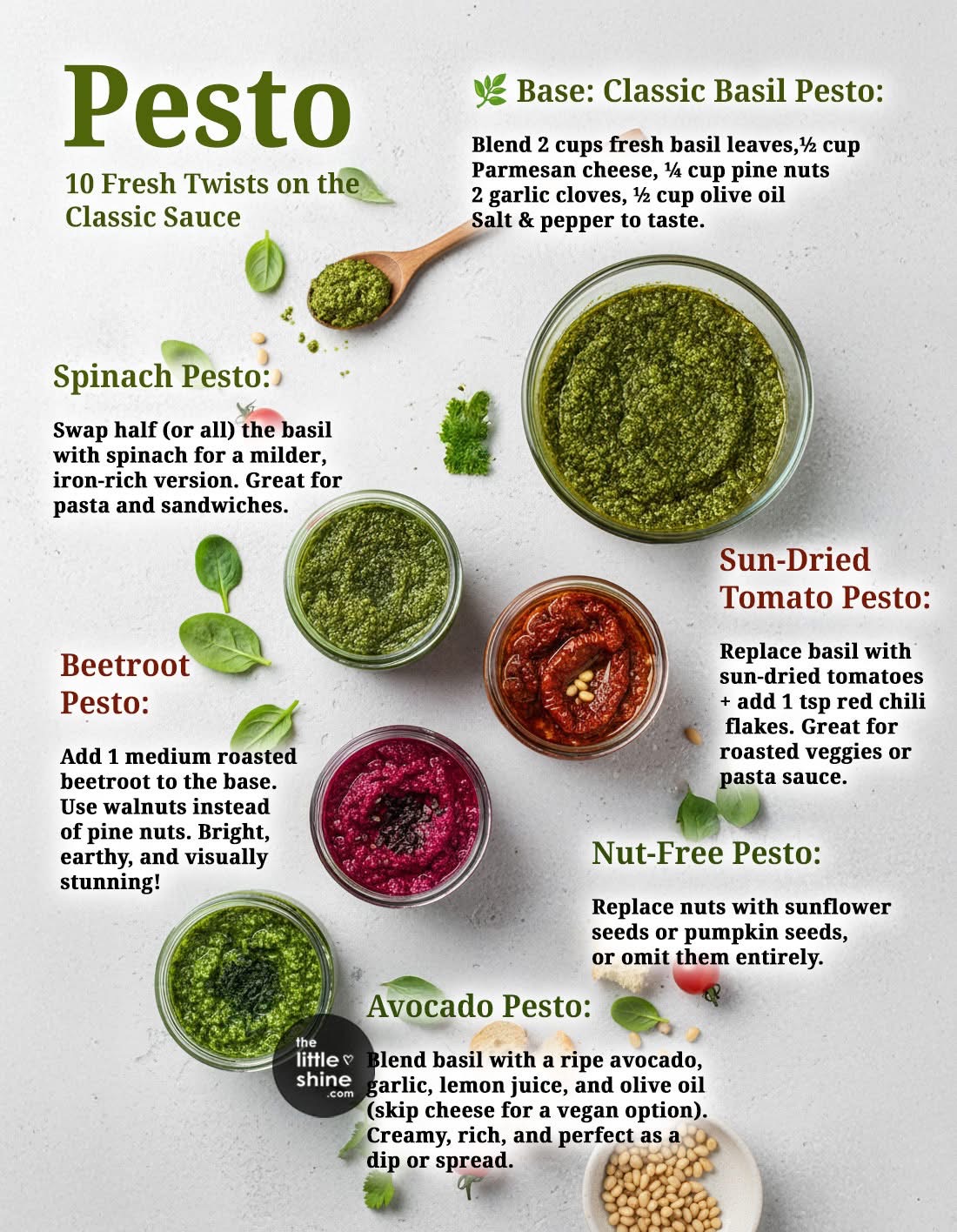 Hereโs your guide to making a simple pesto base โ plus 10 easy variants to keep things fresh and flavorful!
